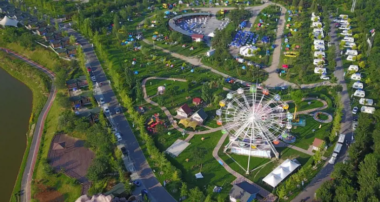 儿童游乐场。园区内有摩天轮、旋转木马、充气城堡、青蛙跳等丰富的游乐设施,搭配一些色彩鲜艳、造型可爱的迷你小木屋,就像步入梦幻般的童话世界,让孩子们在回归自然的过场中寻找童真童趣。摩天轮是公园的另一大亮点。