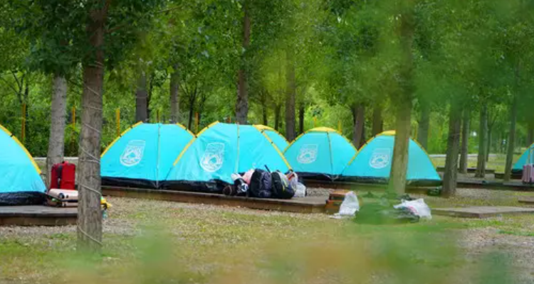 水景篷房区。10座充满异域风情的童话小屋,点缀于水景之间,隐藏于绿林之中。清晨聆听鸟鸣虫唱,夜晚遥望漫天繁星,让人仿佛置身世外桃源。帐篷营位区,地域十分开阔,植物疏密组合。营位铺设木制地台,增加扎营的舒适度。还在营位旁预留了篝火广场和活动空间供游客使用。清爽之夜,色彩斑斓、形态各异的帐篷驻扎湖岸,点燃一把篝火,新老朋友围坐一堂,尽享受夏日的狂欢。